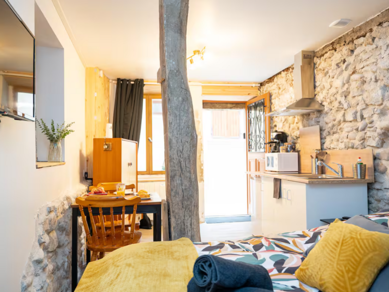 Profitez d’un moment authentique dans ce studio cosy pour 2 personnes, alliant confort et charme, avec accès