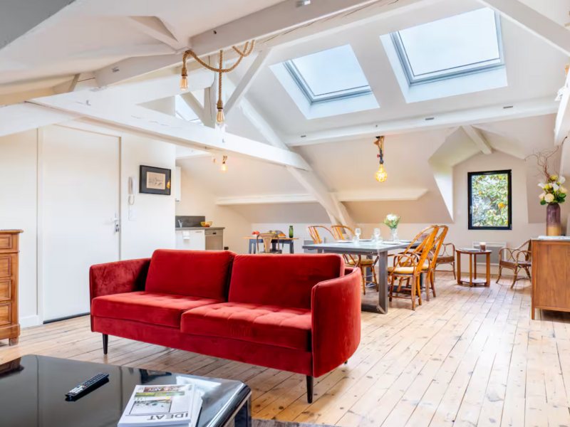 Niché sous les toits, ce logement lumineux vous séduira par son atmosphère alliant le charme de l’ancien, son élégance discrète et son calme apaisant
